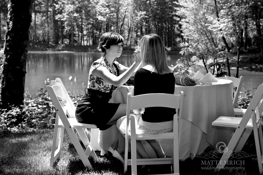 There are lots of places for a bride to get ready: a hotel room, her parents’ house, a bridal suite at the wedding venue, etc. This, however, was the most scenic place I’ve ever seen a bride receive those finishing touches. Another Bridal Veil Lakes wedding.