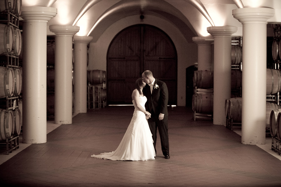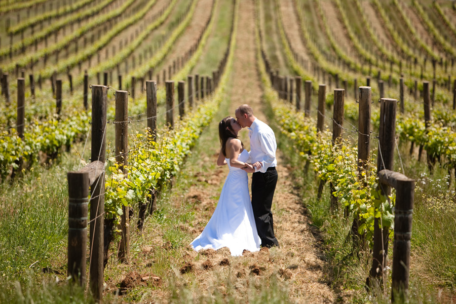 King Estate is a beautiful winery located between Eugene and Lorane, along Territorial Highway. The barrel room at King Estate is a great place for newlyweds to create a lasting, memorable photo session. The room is quite dark but I was able to position my lights behind some of the columns and out of the way. Once I’ve got this accomplished, I always tell the bride and groom that I’m ‘just metering’ for a bit and I ask them to do whatever comes naturally while I take a few ‘test shots.’ What I don’t tell them until later is that my lighting has already been fine-tuned and that all those ‘test shots’ are real. This allows me to create candid moments that have the lighting and background that I’ve chosen for optimal images:)