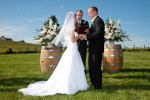 As is the case with every bride I work with, they all hope for a bright sunny day for their wedding. Some photographers prefer cloudy days or, if it’s going to be sunny, a late afternoon/early evening wedding (so the light isn’t so harsh). I say sunny days are great too! All you need is a few off-camera lights and those pesky shadows are gone…but you still get bright blue skies, green grass and, at King Estate, wonderful reflections from the pond (you didn’t know about the pond, did you? It’s cool).