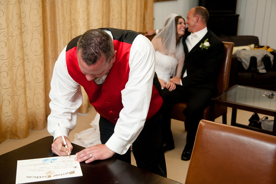 Guys, for the most part, spend about 10 minutes getting dressed and up to 3 hours waiting for their beautiful bride to emerge. These two were no exception. This was taken at King Estate, for Julie and Nate’s wedding.