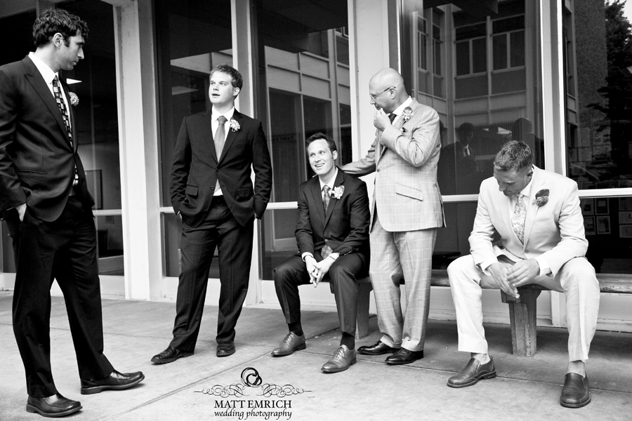 This groom was nervously waiting for his bride to arrive. The groom’s father took the chance to give his son some last minute advice and reassurance as the rest of the groomsmen waited.