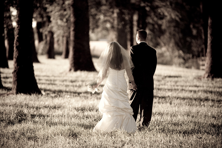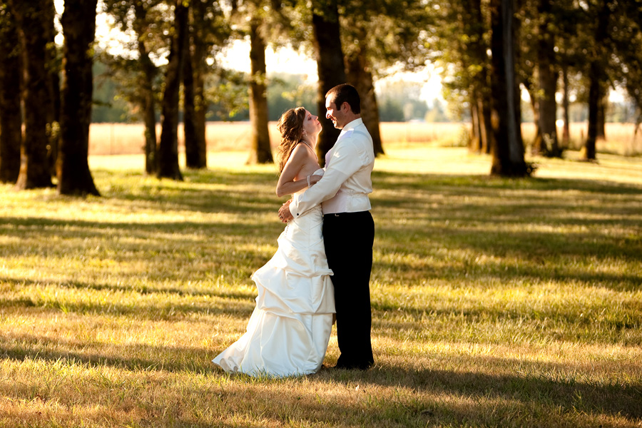 I still used some fill flash, from the speedlight on my 5D, but it was slight (just enough to make sure the wedding party was slightly illuminated). Most King Estate weddings, in the summer at least, are clear and sunny from beginning to end. And, as I always tell each couple in my initial interview, I love to grab them for a 20 minute session right around sunset for some of those ‘magic hour’ photos. This one, of Drew and Sara below, was just such an image.