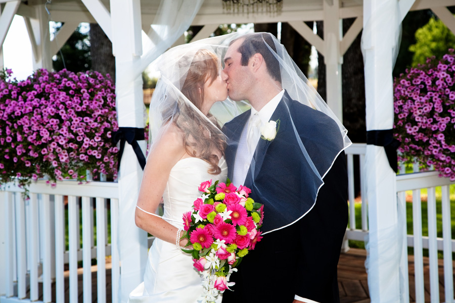 As is the case with every bride I work with, they all hope for a bright sunny day for their wedding. Some photographers prefer cloudy days or, if it’s going to be sunny, a late afternoon/early evening wedding (so the light isn’t so harsh). I say sunny days are great too! All you need is a few off-camera lights and those pesky shadows are gone…but you still get bright blue skies, green grass and, at King Estate, wonderful reflections from the pond (you didn’t know about the pond, did you? It’s cool).